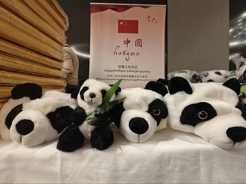 使馆精心准备的中国特色工艺品和食品受到广泛欢迎。熊猫玩偶、茶具、人物花鸟团扇、真丝方巾等中国风工艺品吸引来宾流连驻足,扬州炒饭、开口笑、包子等中华美食供不应求,为格各界朋友打开一扇可知、可感、可亲的中华文化窗口。周大使夫妇在现场热情“带货”并向主办方、驻格使团代表和现场来宾介绍中华传统文化。来宾纷纷赞叹中式艺术之美、中华文化之博大精深。