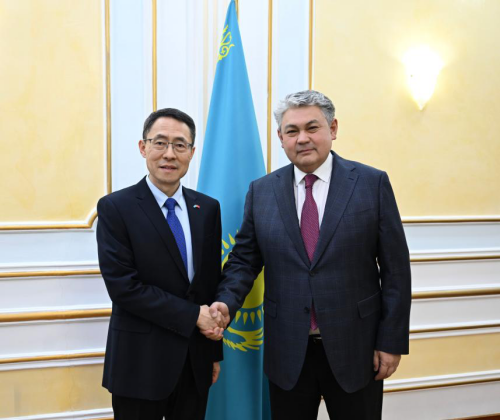2025年12月30日,驻哈萨克斯坦大使韩春霖拜会哈萨克斯坦外长科舍尔巴耶夫。