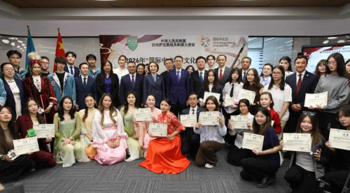 2026年4月20日,驻哈萨克斯坦使馆与北京语言大学哈萨克斯坦分校在该校联合举办2026年“国际中文日”文化体验活动暨“丝路翰墨·笔绘青春”哈青少年汉字书写大赛颁奖仪式。驻哈萨克斯坦大使韩春霖和阿斯塔纳国际大学校长米尔扎加利耶娃出席并致辞,北京语言大学校长段鹏视频致辞。来自阿斯塔纳市及周边地区近200名哈青少年参加活动。