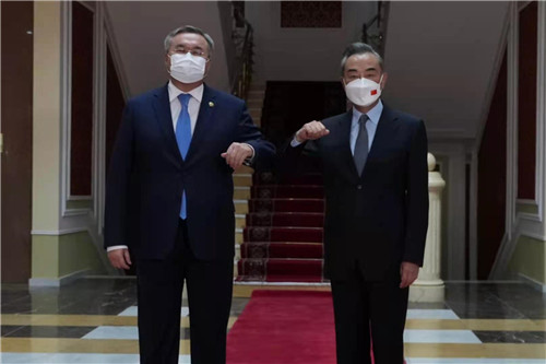 王毅表示,中哈在共同抗疫中互施援手,两国友谊得到进一步升华。中方愿同哈方一道,全面落实两国元首达成的重要共识,以明年两国建交30周年为契机,加强抗疫和各领域互利合作,推动中哈永久全面战略伙伴关系再上新台阶。双方要加强发展战略对接,加快商签政府间经贸合作规划和新版投资保护协定,落实好双方商定的产能合作项目,提升中欧班列开行数量和运营质量,推进人工智能、数字金融、跨境电商、绿色能源等领域合作。欢迎哈方积极参与北京冬奥会。中方支持哈方办好亚信外长会议,愿同哈方共同推动阿富汗局势平稳过渡,促进地区安全、稳定与发展。双方要加强多边领域的协调配合,维护发展中国家共同利益,维护国际公平正义,维护国际关系基本准则。