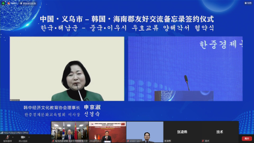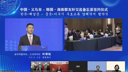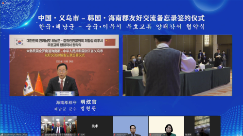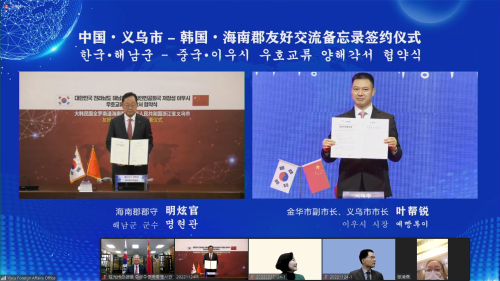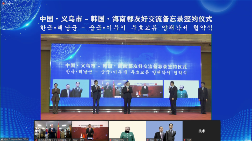 活动中,义乌市和海南郡进行了友好交流备忘录线上签署仪式。