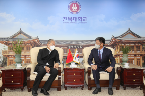 活动前,张总领事会见全北大学副校长崔柏烈,就在校中国留学生生活学习情况及该校对华教育合作进行交流。