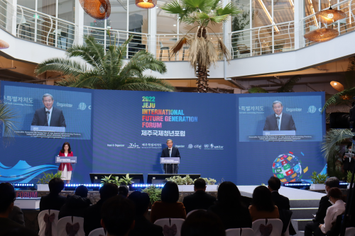 2022年12月11日,驻济州总领事王鲁新应邀出席2022济州国际青年论坛,济州特别自治道厅文化体育对外协力局长吴成律、济州大学副校长金东栓、济州国际和平财团事务局长高庆民、菲律宾驻韩国大使玛利亚·特蕾莎、日本驻济州总领事武田克利等出席活动。济州特别自治道知事吴怜勋、国会议员金翰奎、济州大学校长金一焕、联合国训练研究机构(UNITAR)济州国际研究中心所长崔烘基视频致辞。来自9个国家、22个城市的青年代表及在济留学生等通过线上线下方式参加活动,并围绕联合国可持续发展目标的青年参与等议题进行了交流研讨。