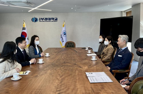 2023年1月3日,驻釜山总领事陈日彪会见韩国国立釜庆大学校长张瑛秀,釜庆大学国际交流本部长河炳点等在座。