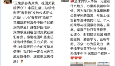 总领馆还委托领区5家侨团因地制宜,筹备过年物资,向旅韩困难中国公民发放“春节包”,让大家在异国他乡感受到家的温暖。