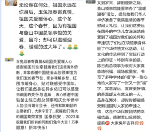 领区侨胞们被年味满满、暖意融融的“春节包”深深感动,纷纷激动“晒包”,无比自豪,表示身在海外感受到祖国对游子的深情关爱,作为炎黄子孙将团结一心,守望相助,为实现中华民族伟大复兴贡献力量!祝愿祖国繁荣昌盛,国泰民安!