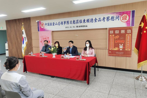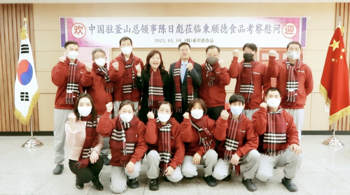 2023年1月4日,陈总领事访问东顺德食品株式会社,参观工厂流水线,并向中国籍员工发放“春节包”。陈总领事高度评价李宝娜代表理事继承父业,传承企业社会责任,奋发有为,开拓创新,为韩国经济社会发展作出贡献。赞赏李代表理事秉承老一辈优良传统,坚定支持祖国统一,坚决反对“台独”,积极投资兴业参与祖国发展建设,热心为侨服务奉献,疫情期间先后为国内抗疫和韩国当地抗疫慷慨捐赠,全力支持侨胞抗疫,树立了新时代大国侨民的良好形象。