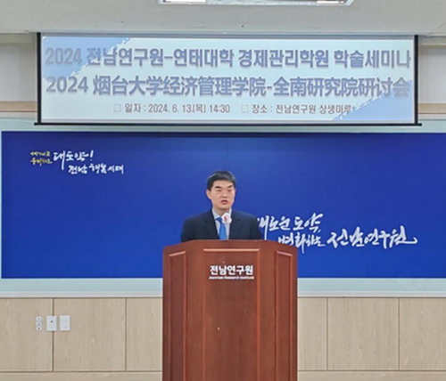 顾总领事表示,经贸合作是中韩关系的压舱石。最近,李强总理会见韩国总统尹锡悦,双方同意发挥好产业投资合作、产供链合作等沟通机制作用。全罗南道与山东省隔海相望,经贸联系密切,中韩(烟台)产业园吸引众多韩企入驻。希望各位专家学者以本次研讨会为契机,为促进中韩地方间经贸合作贡献力量。