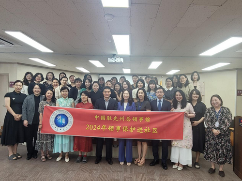 2024年6月16日,驻光州总领事顾景奇出席在光州西区家庭中心举办的总领馆“2024年领事保护进社区”活动。中心负责人尹惠敬和社区中国同胞约50人参加活动。