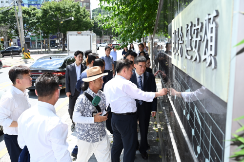 参观中,当地居民主动向顾总领事表示,郑律成是出生在南区杨林洞并成长成名于中国的杰出音乐家,作为杨林洞居民倍感自豪,支持区政府开展有关纪念事业。顾总领事勉励其弘扬先辈崇高风范,为中韩友好添砖加瓦,欢迎他们多到中国走走看看。