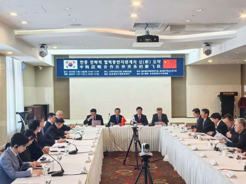 2025年11月11日,驻韩国大使戴兵出席“深化中韩战略合作伙伴关系国际论坛”开幕式。