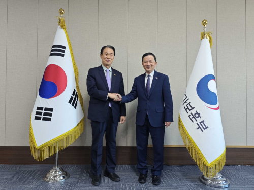 2025年11月19日,驻韩国大使戴兵会见韩国国家报勋部长官权五乙。