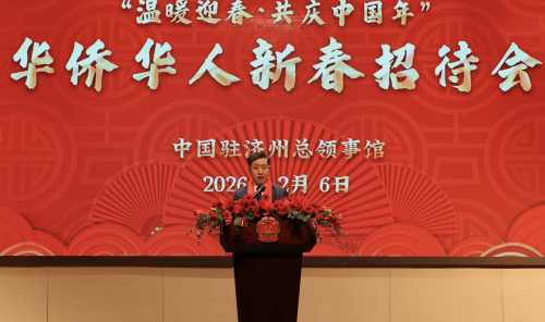 2026年2月6日,驻济州总领馆举办2026年“温暖迎春·共庆中国年”济州华侨华人新春招待会,驻济州总领事陈建军出席并致辞。领区华侨华人、中资机构、孔子学院及留学生代表等200余人欢聚一堂,同贺新春。