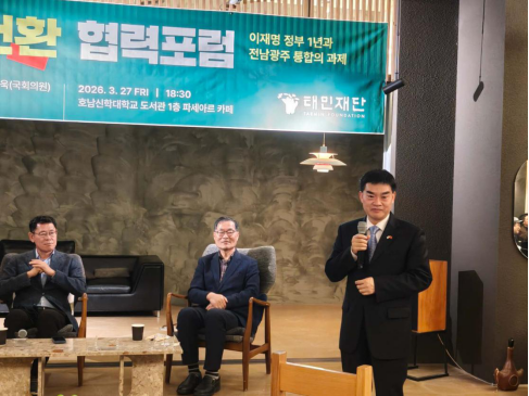 2026年3月27日,驻光州总领事顾景奇应邀出席韩国光州太民财团举办的“大变革时代的合作”学术论坛,韩统一部前长官金炼铁、国会议员丁秦旭、全罗南道教育监金大中等参加。