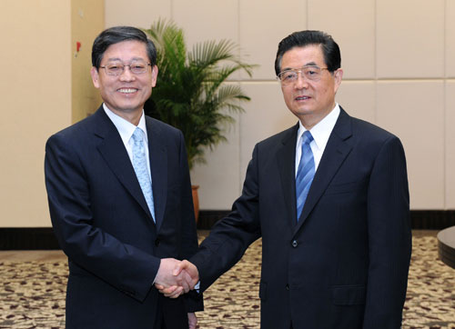 2011年4月14日,国家主席胡锦涛在海南省三亚市会见了来华访问并出席博鳌亚洲论坛2011年年会的韩国总理金滉植。