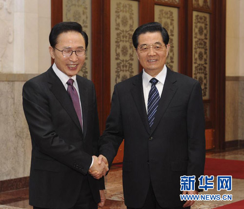 2012年1月9日下午,国家主席胡锦涛在人民大会堂同来华进行国事访问的韩国总统李明博举行会谈。两国元首就双边关系和共同关心的国际和地区问题深入交换意见,达成重要共识。