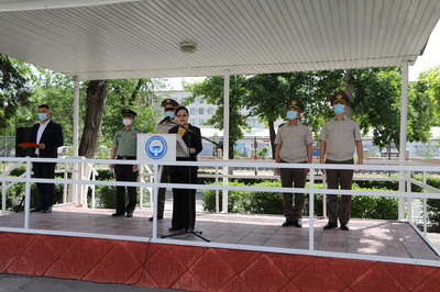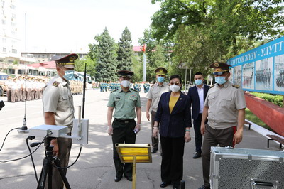 2021年5月26日,驻吉尔吉斯斯坦大使杜德文与吉国防部长奥穆拉利耶夫共同出席援吉军事装备交接仪式。