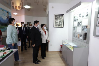 会见前,杜大使在伊马纳利耶夫陪同下参观了吉国家图书馆。