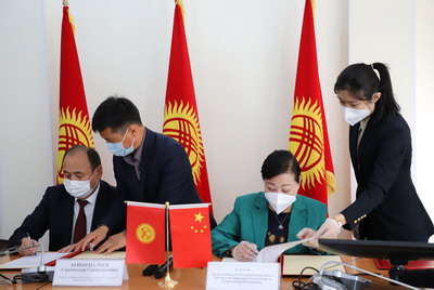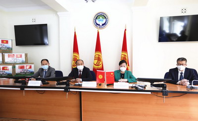 2021年9月22日,驻吉尔吉斯斯坦大使杜德文与吉卫生和社会发展部部长别伊舍纳利耶夫、紧急情况部国务秘书马姆别托夫共同出席新疆维吾尔自治区援吉粮食和抗疫物资交接仪式并签署物资交接证书。