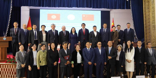 2025年9月26日,驻吉尔吉斯斯坦使馆同吉总统办公厅、吉国立大学共同举办全球治理倡议研讨会。驻吉尔吉斯斯坦大使刘江平出席并作主旨报告,吉副总理拜萨洛夫、议员、吉国立大学校长、各高校和科研机构负责人发言,吉各高校师生代表逾100人参加。
