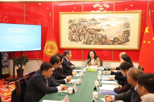 2025年10月16日,驻吉尔吉斯斯坦使馆举行中国共产党的自我革命和中央八项规定精神宣介会,驻吉尔吉斯斯坦大使刘江平出席并作主旨发言,吉总统直属国家管理学院院长、世界政治研究所所长以及政界、学界和媒体代表20余人出席。