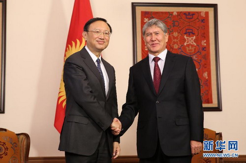2014年12月29日,吉尔吉斯斯坦总统阿塔姆巴耶夫在比什凯克会见了习近平主席特使、国务委员杨洁篪。