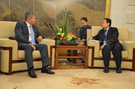 2015年5月18日,外交部副部长程国平会见吉尔吉斯斯坦“正义”党领袖、前外长捷克申库洛夫。双方就中吉关系和“一带一路”建设等问题交换意见。