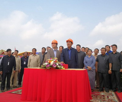 之后,洪森首相和熊波大使一同按下启动按钮,为项目工程打下第一根桩。