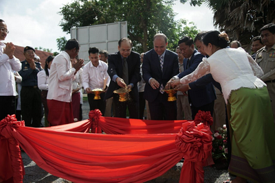 2018年6月27日,柬埔寨磅士卑省妇产医院门诊楼举行动工典礼,柬国会议员洪玛尼、驻柬埔寨使馆临时代办李杰、磅省省长文森南及省内各界代表700多人出席。