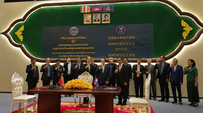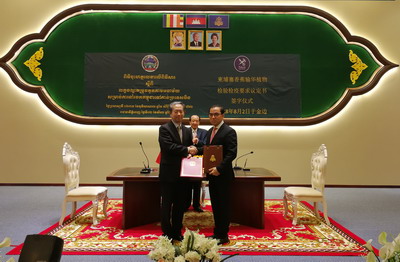 2018年8月2日,驻柬埔寨大使熊波代表中国海关总署与柬农林渔业大臣翁萨坤共同签署了《柬埔寨香蕉输华植物检验检疫要求议定书》。柬副首相贺南洪出席见证签字仪式。