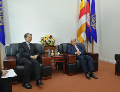 签约仪式前,熊波大使与柬副首相贺南洪和农林渔业大臣翁萨坤分别进行了简短会谈。