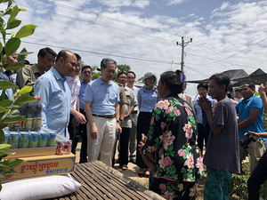 熊波大使表示,中柬两国是好朋友、好兄弟,两国之间一直有着相互支持和相互帮助的传统。近期柬埔寨多地连降暴雨,洪涝灾害严重,给包括磅湛省在内的地方民众造成严重损失,我们对此感同身受。“一方有难、八方支援”,我们将柬埔寨人民的困难视为自己的困难,愿为大家提供力所能及的帮助,克服当前的困难。相信在洪森首相为首的王国政府有力领导下,柬埔寨人民一定能够早日战胜洪涝灾害,重建家园。
