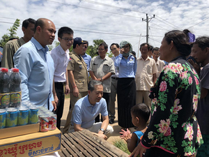 2018年8月16日,驻柬使馆向柬埔寨磅湛省洪灾灾区民众捐赠物资仪式在苏定岛县政府举行。驻柬埔寨大使熊波、柬青年联合会主席洪玛尼出席捐赠仪式并讲话,当地1500多户灾民参加仪式并领取使馆捐赠的应急生活物资。