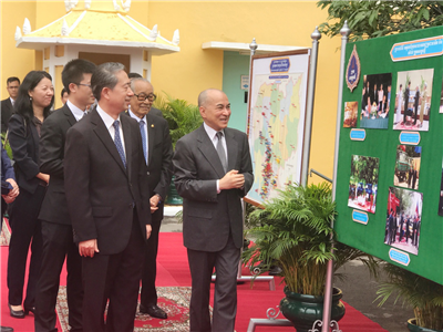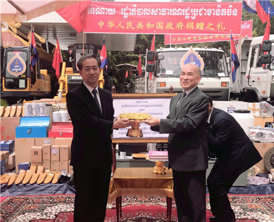 2018年8月24日上午,中国援助柬埔寨国王工作队物资交接仪式在金边王宫举行。诺罗敦·西哈莫尼国王、驻柬埔寨大使熊波、柬副首相兼王宫事务部大臣贡桑奥等出席。