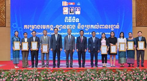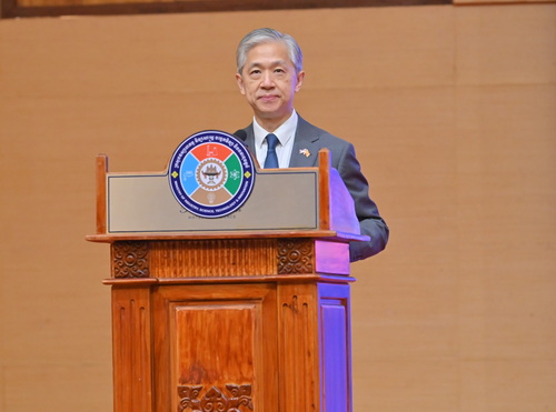 2025年12月18日,由澜湄合作专项资金支持的“加强中小企业产能和技术合作,推动澜湄国家实现工业4.0”项目总结会在金边举行,驻柬埔寨大使汪文斌和柬工业和科技创新大臣韩万迪、外交与国际合作部国务秘书棉金兴出席并致辞。