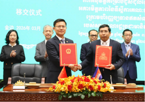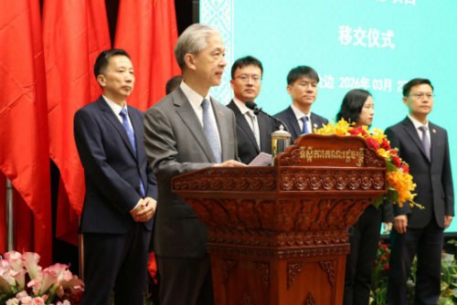 2026年3月27日上午,中国援柬埔寨政府办公楼维修项目移交仪式在金边举行,柬副首相兼内阁办公厅大臣翁赛维索和驻柬埔寨大使汪文斌出席并见证签署项目移交证书。