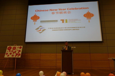 此次联欢会由该院与中水电集团共同举办,在该院学中文的学生及家长等120多位中外朋友应邀出席。学生们上台,用中文演唱“茉莉花”,中国书法家现场书写春联赠与来宾,中国风味菜肴令外国朋友赞不绝口。联欢会洋溢着浓郁的中国年味,进一步激发了外国朋友了解中国文化的广泛兴趣。