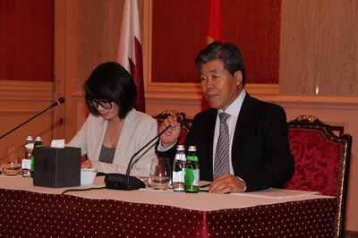 高有祯大使首先做主题报告。他表示,2013年9月和10月,中国国家主席习近平在出访中亚和东南亚国家期间,先后提出共建“丝绸之路经济带”和“21世纪海上丝绸之路”(以下简称“一带一路”)的重大倡议,得到包括卡塔尔在内的国际社会高度关注。近日,中国政府制定并发布了《推动共建丝绸之路经济带和21世纪海上丝绸之路的愿景与行动》,详细阐述了“一带一路”倡议的背景、原则、内容、机制、目标等,目的是推进实施“一带一路”重大倡议,让古丝绸之路焕发新的生机活力,以新的形式使亚欧非各国联系更加紧密,互利合作迈向新的历史高度。