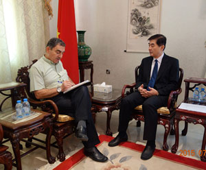 2015年7月8日,驻卡塔尔大使李琛接受了卡塔尔《旗帜报》记者专访。