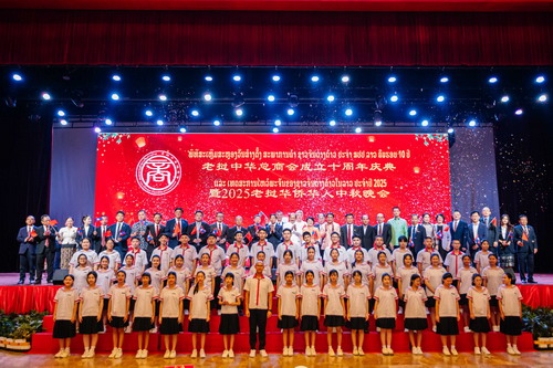 2025年10月2日,驻老挝大使方虹出席老挝华侨华人中秋晚会并致辞。老挝党中央政治局委员、建国阵线主席辛拉冯,老挝党中央政治局委员、政府副总理吉乔等老方领导人及旅老各界华侨华人约900人参加。