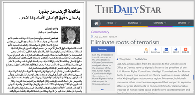 2019年8月27日,驻黎巴嫩大使王克俭在黎阿拉伯文报纸《白天报》和英文报纸《每日星报》同时发表题为《标本兼治恐怖主义,保障民众基本人权》的署名文章。全文如下: