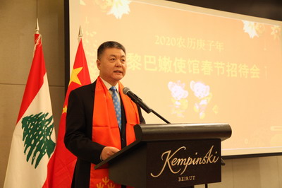 2020年1月21日,驻黎巴嫩使馆在贝鲁特举行农历庚子年春节招待会。在黎中资机构代表及中国教师、留学生、维和官兵、华侨华人和家属等约300人欢聚一堂,共贺新春。