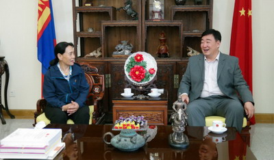 邢大使欢迎嘎玛一行到访,他表示,中蒙两国是山水相连的友好邻邦。近年来,两国政治互信不断巩固、务实合作不断发展、人文交流日益密切,两国关系面临新的发展机遇。地方交流是两国关系的重要组成部分,驻蒙古使馆将继续支持西藏自治区发挥自身优势,积极参与“一带一路”倡议与“发展之路”的战略对接,同蒙方携手实现互利共赢,共同发展。