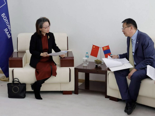 2026年4月16日,驻蒙古大使沈敏娟拜会蒙古新任教育部长恩赫阿木格楞。