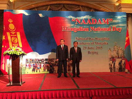 2015年6月29日,外交部部长助理刘建超应邀出席蒙古国庆招待会,并同蒙古驻华大使苏赫巴特尔就双边关系交换意见。双方一致认为,当前中蒙关系发展良好,双方要共同努力,积极落实习近平主席访蒙各项成果,推动中蒙关系不断取得新发展。
