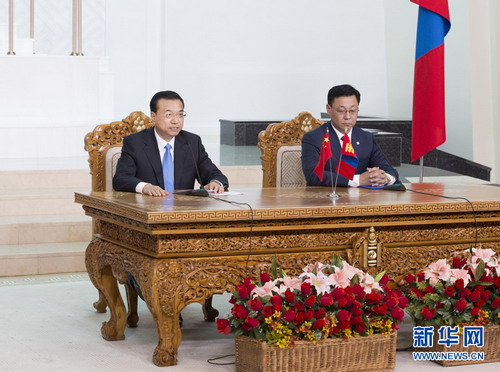 李克强与蒙古国总理额尔登巴特共同会见记者