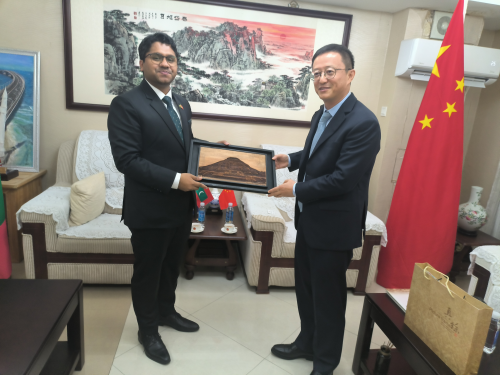 2025年10月21日,驻马尔代夫大使孔宪华在使馆会见孟加拉国驻马高级专员纳兹穆尔·伊斯兰。双方就深化中孟关系、加强三方合作及共同促进地区稳定与发展进行了友好交流。