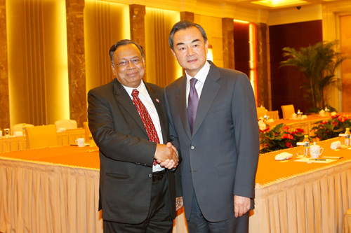 王毅祝贺孟加拉国成为亚信正式成员,表示孟加拉国是中国在南亚和印度洋地区的重要合作伙伴,中国政府珍视中孟传统友谊,高度重视发展对孟关系。中方愿同孟方一道努力,保持高层接触与互访势头,推动两国关系再上新台阶。中方将继续鼓励中国企业赴孟投资,支持双方开展多领域的务实合作,愿与孟方密切配合,使孟中印缅经济走廊建设进一步走实,早日给有关各方带来切实利益。