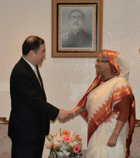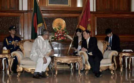 2016年4月13日,孟加拉国总统哈米德和总理哈西娜在达卡分别会见来孟出席中孟第十轮外交磋商的中国外交部部长助理孔铉佑。
