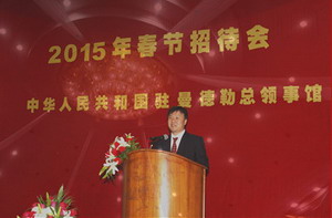 王总领事在展望2015年中国发展前景时表示,随着中国工业化、信息化、新型城镇化和农业现代化新“四化”推进,大众创业、万众创新的经济新引擎将使整个经济机体充满生机。人人都有平等机会和舞台实现人生价值,社会进一步实现公平、正义,将为中国平稳发展提供不竭的动力。希望广大侨胞顺势而为,抓住机遇,通过自己的努力,为两国和两国人民的友好做出更大的贡献。